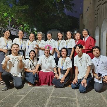 The three O.Ss.R. Sisters (from Left to Right): Karine Lucente, Alice Laurente Agosto, and Fides Borgonia, at Cultural Night on Day 2 (24 June 2023)