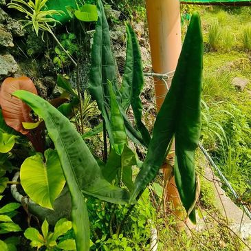 A flowering plant species native to Columbia and Ecuador. Prefers warm, shady and humid climates, such as tropical rainforests. Most characteristic feature is its brightly coloured spathe leaf and protruding inflorescence called spadix.
